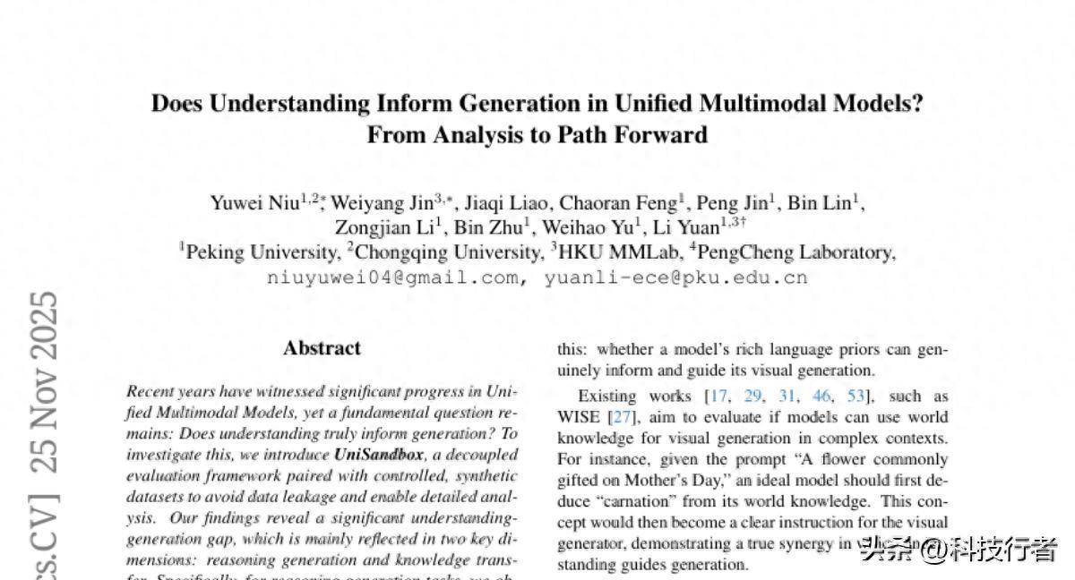 这项由北京大学袁立教授领导的研究团队发表于2025年11月的arXiv预印本平台,论文编号为arXiv:2511.20561v1。研究团队包括来自北京大学、重庆大学、香港大学MMLab等多个机构的研究人员,他们首次深入探讨了一个令人困惑的现象:为什么那些能够精准理解图像和文本的AI模型,在生成相应内容时却表现得如此不尽人意?