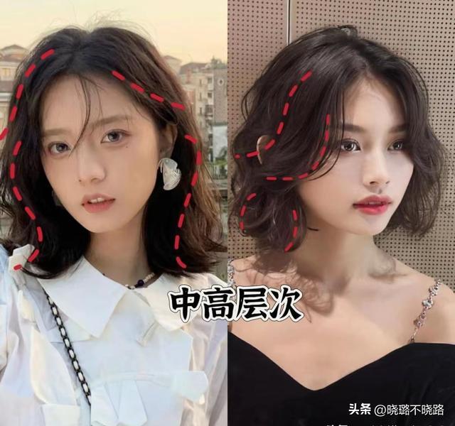 相比之下,中高层次烫发,不管你怎么打理,都会有一种不刻意的美,放出来的,卷发,也更加灵动、自然、好看,刘海长度不超过下巴,外面一层短于里面即可。