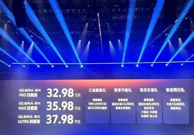 这四大车企中,最先发力的就是大众汽车,它的iD9X,预售价为32.98-37.98万,超5.2米的车长,3.07米的轴距,大六座的布局,在尺寸、空间以及整体的气场上完全不输理想问界。