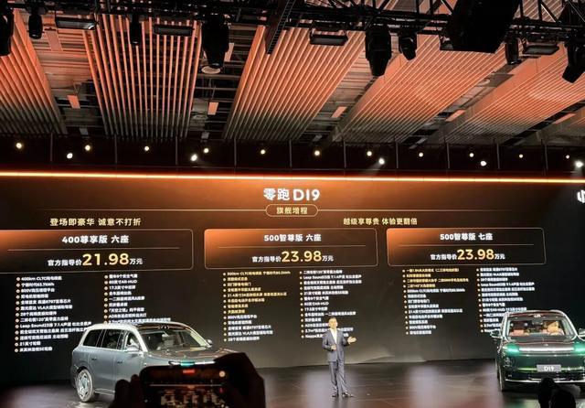 然后就是现阶段造车新势力的冠军选手零跑,刚刚上市的零跑D19,彻底秀了一把性价比,超5.2米长的大六座SUV,轴距超3.1米,售价仅需21.98-26.98万,而且它不只有增程动力,还有纯电车型。
