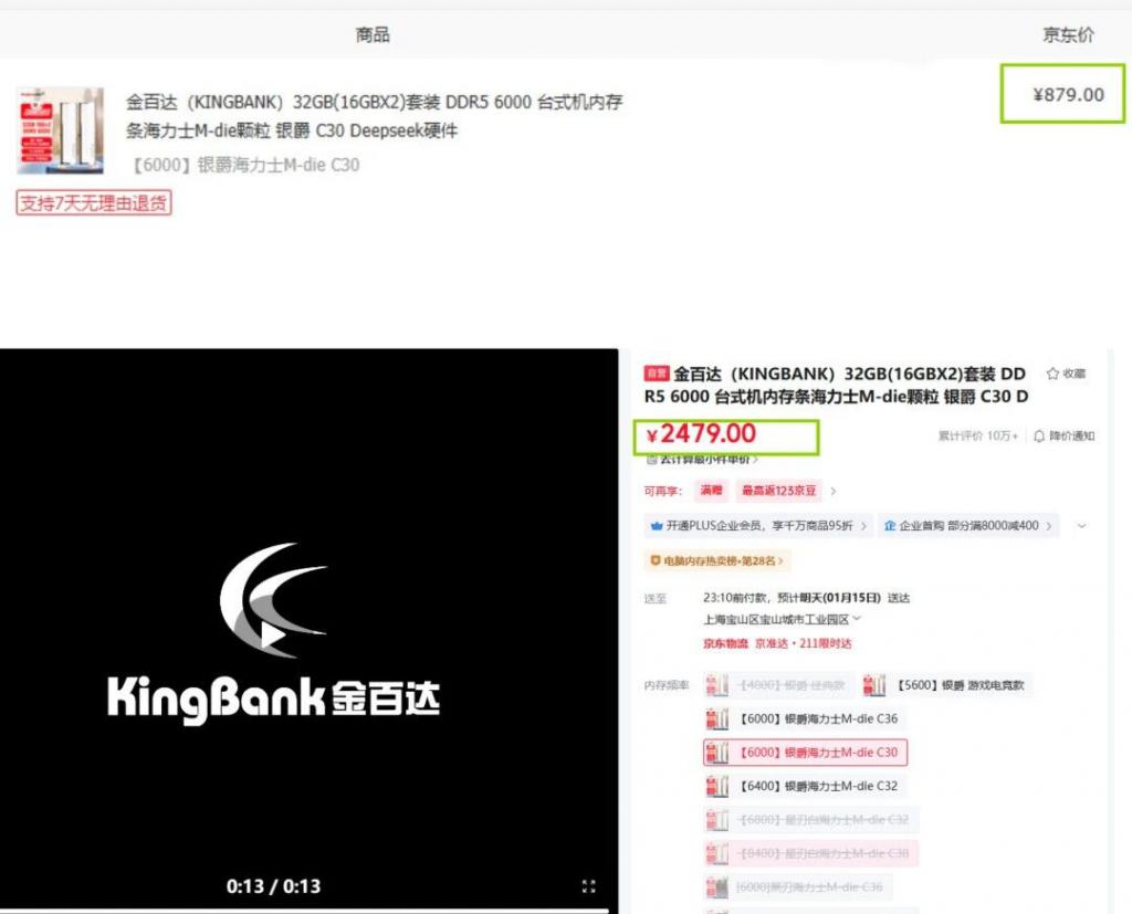 “从去年国庆涨到现在,一组两根 32GB 的 DDR5 内存条报价至少涨了 1000 元。”一家存储产品档口的老板黄生(化名)不停刷着同行群里的最新报价,“海外原厂颗粒的内存条价格更夸张,是之前报价的 3 倍。这款海力士原厂颗粒的金百达 32GB 内存条,去年 9 月底的市场价是 880 元左右,现在已经涨到 2480 元,而且很多都是缺货状态,有钱也买不到。”