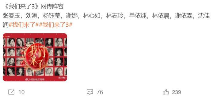 紧接着,网上传出《我们来了3》的录制阵容,我们一起看一看: