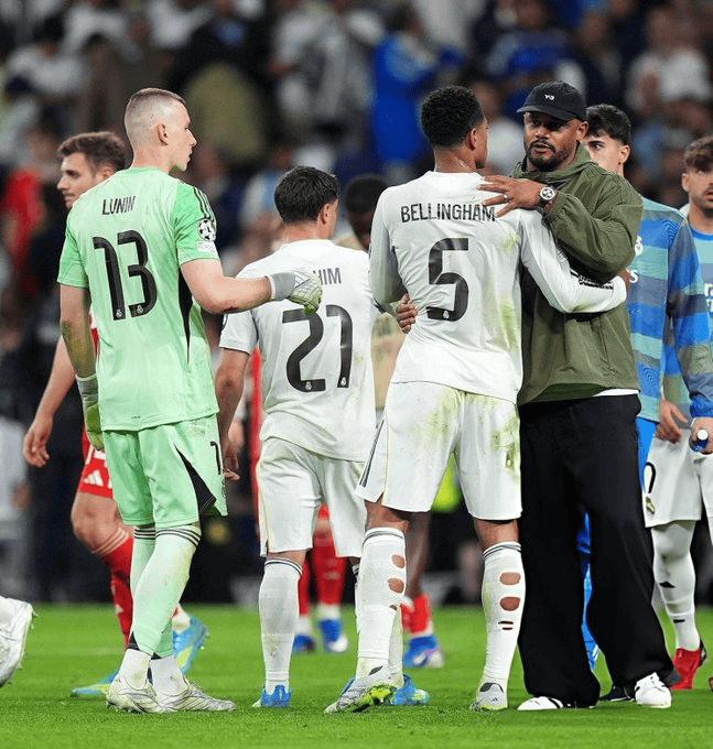 虎扑04月08日讯 在伯纳乌这块欧洲足坛最难以征服的客场,拜仁慕尼黑用一场2-1的胜利震惊了世界。这场欧冠四分之一决赛首回合的胜利,不仅让文森特-孔帕尼的球队在半决赛门票争夺中抢得先机,更在赛后上演了一幕超越胜负的温情画面。